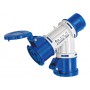 Adattatore doppio da spina 2P+T 16A CEE IP44 - Presa 2x2P+T16A IP44. In materiale termoplastico autoestinguente con elevata resistenza agli urti e alle basse temperature