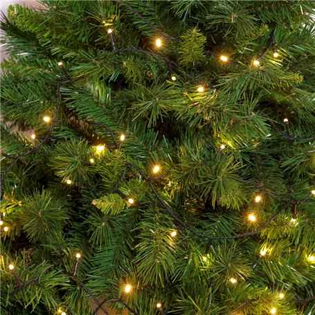 Con led reflex Ø 5 mm ad alta luminosità . Memory controller, 8 giochi di luce selezionabili. Cavo verde, trasformatore 31V, tensione 220-240V. Prodotto certificato IMQ. Per uso interno ed esterno.200 led l.calda - 10 mt. (8+2)