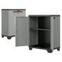 In resina, resistente al gelo e alle intemperie, 2 ante, 1 piani posizionabile a diverse altezze. Colore grigio. Dimensioni L68xP39xH90 cm.