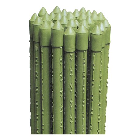 Tutore in metallo rivestito in plastica a superficie zigrinata. Indicato per l'uso in orti, serre, vivai, giardini, casa. Adatto per sostenere e facilitare, nella crescita, l'ancoraggio delle piante. Con tappi di chiusura alle estremità . Colore verde.Ø