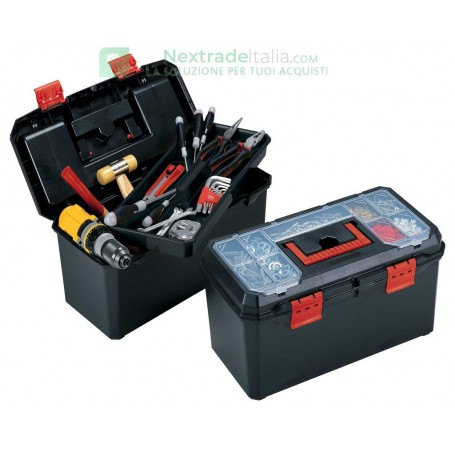 Mod. TOOL CASE 19 in resina termoplastica, maniglia a scomparsa. Vassoio interno estraibile. Scomparti portaminuterie sul coperchio. Dimensioni mm 475x240x225h