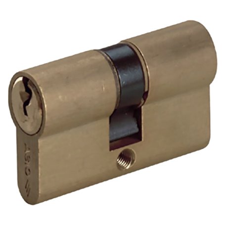 In ottone, camma DIN. Dotazione tre chiavi.mm 24,5+10+24,5 = 59 (29,5+29,5)