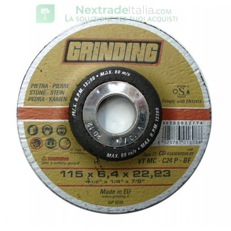a centro depresso. Per la sbavatura, spianatura, levigatura di ghisa, bronzi e materiali da costruzione in genere. Foro 22,2 mm Spessore 6,4 mm Diametro 115 mm