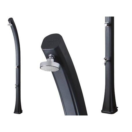 Doccia solare curva in resina 25 litri con rubinetto, monocomando in ABS e ottone cromato. Dimensioni 19x17xH219 cm.