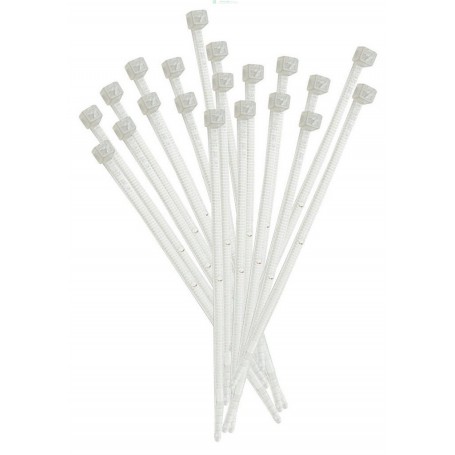 in poliammide 6.6 Bordi laterali arrotondati. Codino inclinato e arrotondato per facilitare l'inserimento nella testina. Confezione da 100 pezzi Colore naturale Lunghezza 450 mm Larghezza 7,5 mm Diametro max serraggio 130 mm
