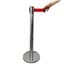 paletto di delimitazione con nastro da 2 m, struttura in acciaio, base diametro 32 cm, palo diametro 63 mm altezza 89 cm