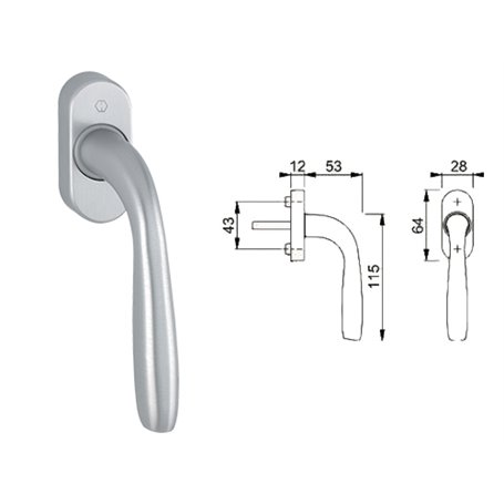 In alluminio finitura cromo satinato. Scatto 45° - Perno Ø 10 mm. - Misura quadro 7 mm. - sporgenza del quadro 35 mm.