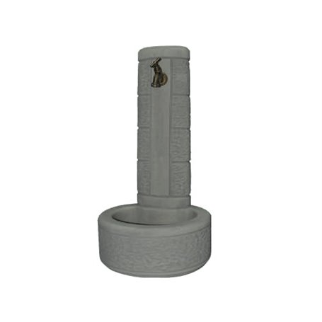 Manufatto in granulato di pietra, cemento bianco, armature interne in ferro zincato e additivi idrorepellenti, finitura realizzata a mano, colore grigio, tubazione interna. Dimensioni 37x37xH75 cm. Peso 35 Kg. Rubinetto 1/2" (ns. cod. 531604) non in dotaz
