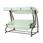 Dondolo 3 posti struttura in acciaio colore grigio scuro, parasole e cuscini colore bianco, porta bicchiere laterale. Dimensioni L230xP118xH170 cm. Capacità max 300 Kg.