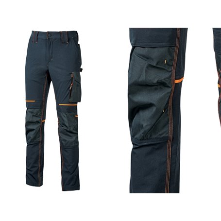 Pantalone da lavoro in tessuto U-4 (U-Power 4 way stretch: 90% Nylon - 10% Spandex - 260gr) molto comodo, resistente, morbido sulla pelle, idrorepellente, traspirante e asciuga rapidamente, 2 ampie tasche anteriori, elastico in vita con regolazione a scom
