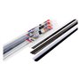 In PVC autoadesivo rigido. Con spazzola fissa, si applica sul fondo della porta. Protegge da correnti d'aria, polveri ed intrusioni di insetti. Lunghezza 1 mt. In busta.bianco