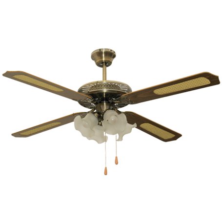 Ventilatore a soffitto con catenelle di comando, 4 pale in MDF DIAMETRO 125 cm. con 4 lampade 60 Watt - 230V-50Hz. Telecomando non in dotazione