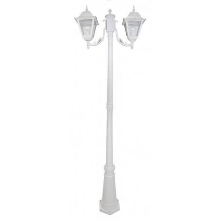 corpo in alluminio pressofuso verniciato con polveri epossidiche.Schermo di protezione in vetro. Per lampade da 60 W.Lampione altezza 200 cm. Colore bianco