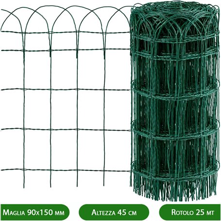 1PZ RETE RECINZIONE ORNAMENTALE PLASTIFICATA H 45 MAGLIA 90X150 Ø 2,8 MM 25MT