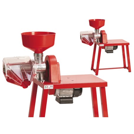 Corpo macchina e ghiera in alluminio UNI50 pressofuso brillantato per alimenti, trasportatore a vite in poliammide, albero in acciaio, filtro in ferro stagnato, gocciolatoio in polipropilene copolimero per alimenti, imbuto in polipropilene alta densità ,