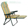 struttura in tubolare ovale di acciaio mm 30x15 Cuscino in policotone spessore 2,5 cm Braccioli antinfortunistica. Poggiatesta spessore 5,7 cm Poggiapiedi con carrello. Regolabile in 6 posizioni