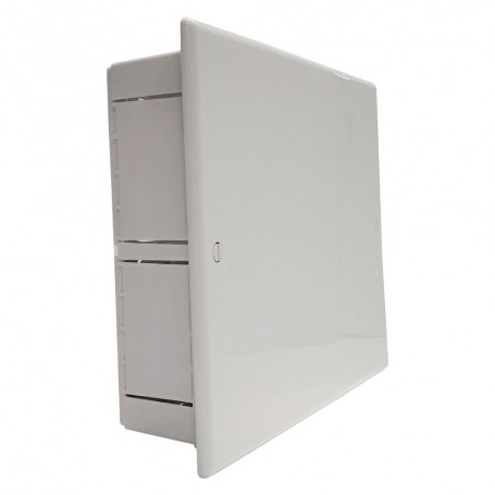 Realizzata in plastica, per applicazione ad incasso. Adatta per l'installazione di ogni tipo di collettore per impianto di riscaldamento e raffreddamento. Coperchio frontale con viti bianco, corpo cassetta nero. Kit fissaggio e viti incluse.cm 52 x 32 x 8