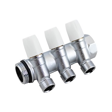 Per tubo multistrato. In ottone cromato con uscite 1/2'x16. Interasse 36 mm. Filetto fasato con pretenuta.4 vie
