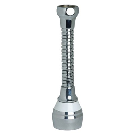 Con aeratore e doccetta cromata. Cannuccia in ottone cromato, doppia aggraffatura, ghiera in ottone cromato. Per rubinetti lisci.cm 15