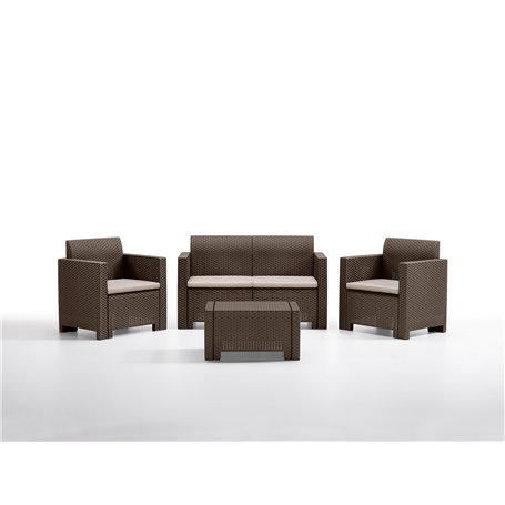 SALOTTO RESINA 4PZ. CON CUSCINI NEBRASKA 2 MARRONE