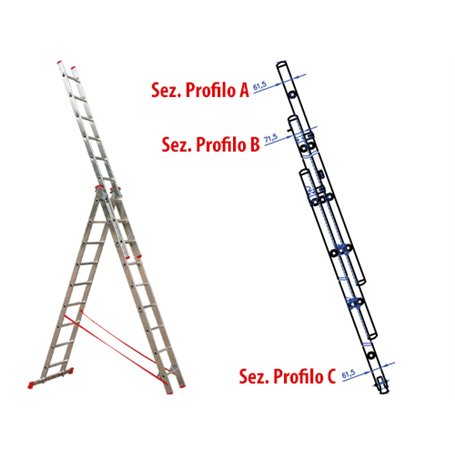 SCALA PROMO STEP TRIPLICI ALLUMINIO GRADINI 3X9 KG 13,4 ALTEZZA MAX 5,29 MT