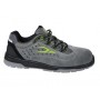 Tomaia in pelle scamosciata traforata con supporto di stabilità al tallone, suola in poliuretano bidensità , puntale in materiale polimerico resistenza 200 Joule. Antiperforazione fibra composita con trattamenti ceramici. Sottopiede anatomico con rialzo