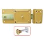 Cilindro staccato esterno. Pomolo interno, cilindro a 5 pistoncini (2 antimanipolazione). Scatola a finitura verniciata elettrostaticamente con polvere epossidica color nocciola mm. 209x90. Completa di 3 chiavi in ottone nichelato, bocchetta, borchia e vi