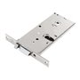 Per porte in alluminio con fascia alta. Scrocco e pistone di ricarica reversibile, scrocco e catenaccio, frontale in acciaio inox, cassa in acciaio zincato, scrocco e catenaccio nichelati, foro per cilindro ovale, quadro 8. 3 MANDATE, ENTRATA 80mm, FRONTA