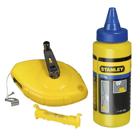 Completo di filo in poliestere da 30 mt, flacone da 113 ml. di polvere blu e livella in plastica antiurto.Kit mt. 30