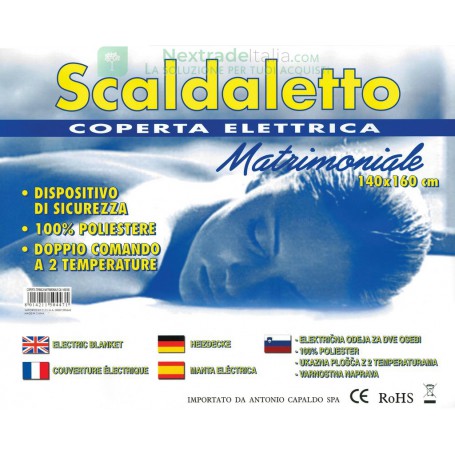 con regolazione di temperatura. Doppio isolamento per la massima sicurezza. Dimensioni cm 140x160