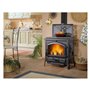 Stufa interamente in ghisa. Piastra in ghisa levigata. Vetro ceramico resistente a 750°. Porta di carico laterale. Focolare ghisa. Scarico fumi Ø 150 superiore/posteriore. Dimensioni mm.790x830x660. Consumo orario 2,5 kg/ora. Metri cubi riscaldabili 338
