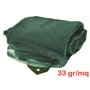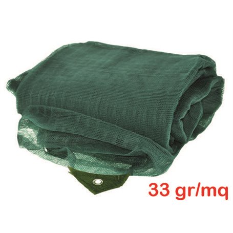 Tessuto antispina, monofili di polietilene peso medio 33 gr/mq., stabilizzato raggi U.V., angolari rinforzati con tassello occhiellato, colore verde