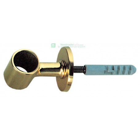 per corrimano in ottone. Passante con tassello da murare. Dimensioni passante ¦ 30 mm. Altezza 73 mm. Placca ¦ 50 mm. Finitura lucido. Confezione blister