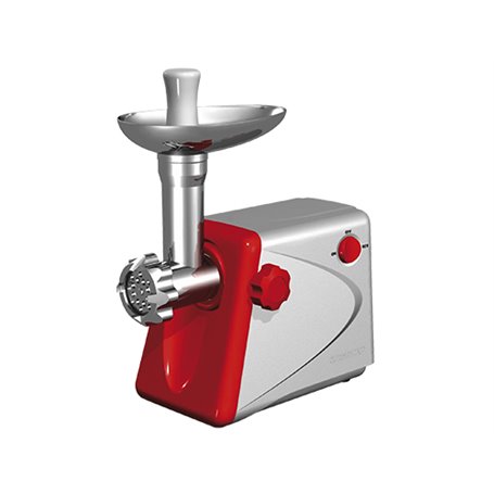 Potenza 385-1500 Watt. Interruttore ON/OFF con inversione di marcia, corpo, elica e piatto superiore in alluminio per uso alimentare. In dotazione: 3 piastre con fori piccoli/medi/larghi, 1 coltello