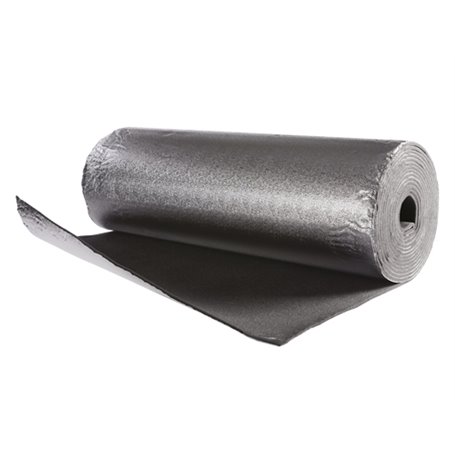 Poliuretano espanso a cellule aperte, autoestinguente, accoppiato ad un foglio di alluminio bucciato resistente ad altissime temperature. Rotolo 10 mt. - Altezza 100 cm.