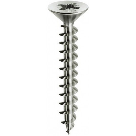 Mod. PANELVIT in acciaio CHROMITING ad alta resistenza. Per legno e pannelli truciolari, tasselli e lamiere sottili. Taglio a croce PZ. Testa svasata piana. Lubrificate. Diametro 3,5 mm Lunghezza 40 mm